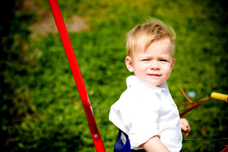 The day after Holden's birthday, he started doing baby signs to me. We were home playing and then he signed "eat" to me. I was so excited that I scooped him up and brought him to his high chair to eat. After a while, I asked (and signed) "Do you want more?" He signed back "more" "eat". You see, I was gung-ho about baby signing about 3 months ago and would try to sign with Holden at mealtimes. I focused on "more", "eat", and "all done". After about a month or so of signing to him and getting no response, I gave up - my enthusiastic signing ended. So I was completely shocked when he started signing almost three months later. The next day I when I picked him up from childcare I asked the teachers if they sign with him at lunch, they said no. I was totally confused. I couldn't understand how Holden could keep these signs in after months of not seeing them. Well, come to find out (after talking to the other moms) a lot of the other toddlers sign in his room. He picked it up from them. But now I'm back on the bandwagon - I'm signing "more", "eat", "milk", "all done" and "bath" with him. He signs most back except milk (although he tries) and bath. When I ask him if he's ready for his bath, he goes over to the bathroom door as fast as he can and starts banging on the door while saying (screaming!) "Baaaa...baaa". It is so cute!